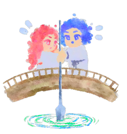 ふたりは空にかかるはしの上に立ちました。