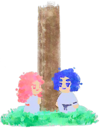 ふたりの神さまは柱のまわりをまわりながら、出会ったところで声をかけあいました。