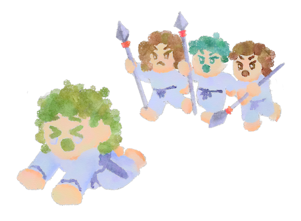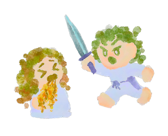 は、「食べものをよごして出しているのだな!」とおこって、神さまをきってしまいました。