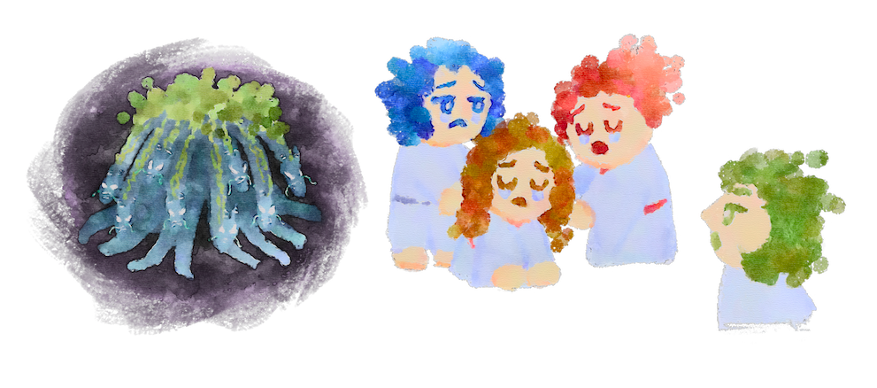 すると、おじいさんとおばあさんが、一人の女の子を間にして泣いていました。