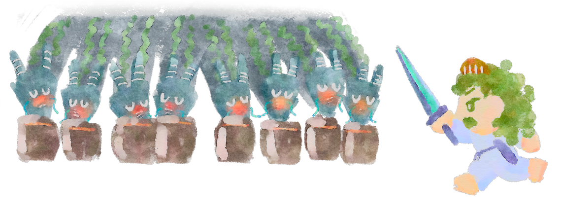 スサノオ は、「 クシナダヒメ をわたしにくれるなら、 ヤマタノオロチ をたおしてみせましょう」と言いました。