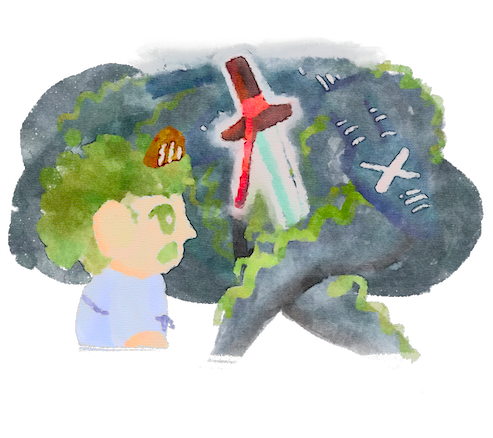 ヤマタノオロチ のしっぽをきったとき、中からりっぱな 剣 が出てきました。