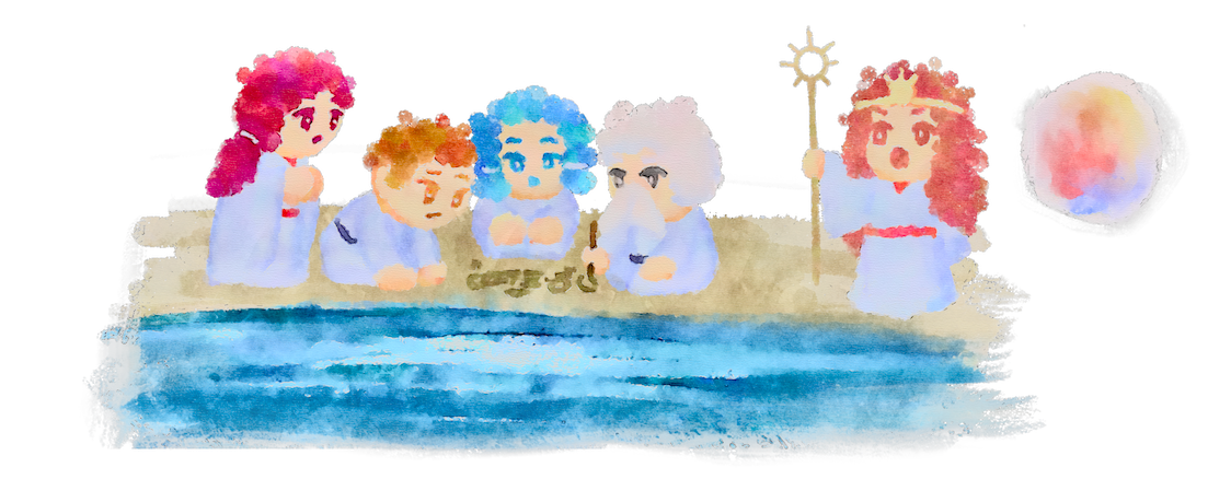 高天原の神々は河原にあつまり、