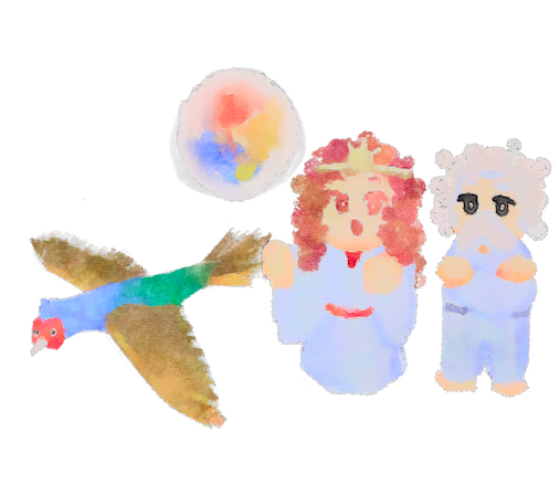 アメワカヒコにかえってこない理由をきこうと、 アマテラスはキジを地上に送ります。