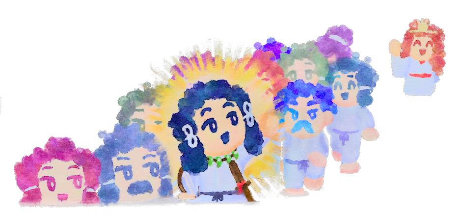 ニニギとコノハナサクヤビメがけっこんして、すぐに赤ちゃんができました。