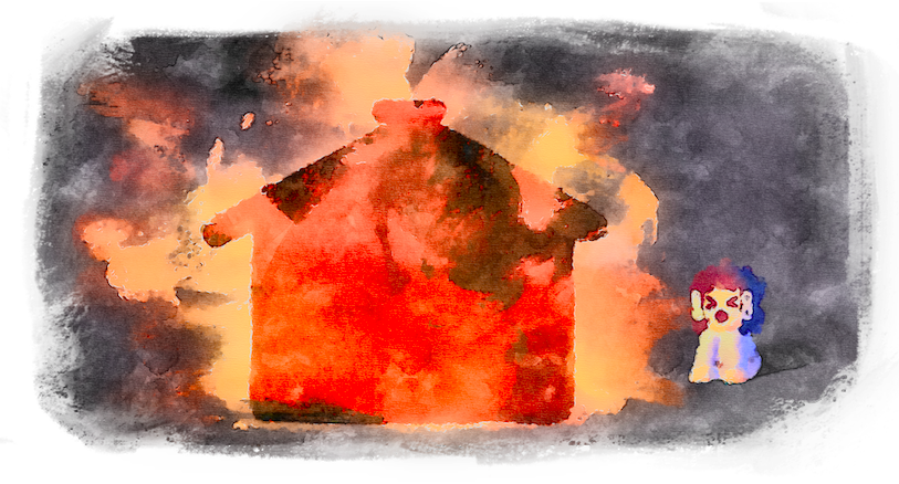 コノハナサクヤビメは出口のない部屋にはいると、なんとその部屋に火をはなちました。