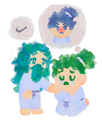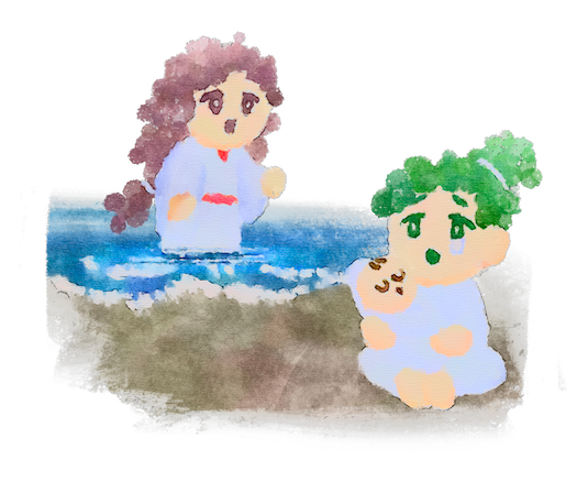 海へかえってしまったトヨタマヒメでしたが、のこしてきた赤ちゃんのことがしんぱいでたまりませんでした。