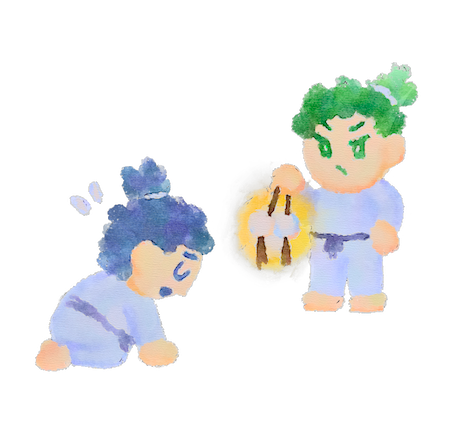 コノハナサクヤビメの子どものホデリは、海の魚を釣るのがとくいで海幸彦とよばれ、弟のホオリは山でかりをするのがとくいで、山幸彦とよばれていました。