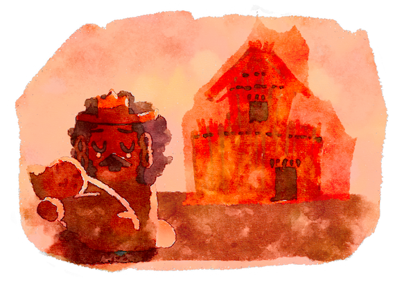 兄はいねで作ったお城にたてこもり、サホヒメもそこへにげこみました。