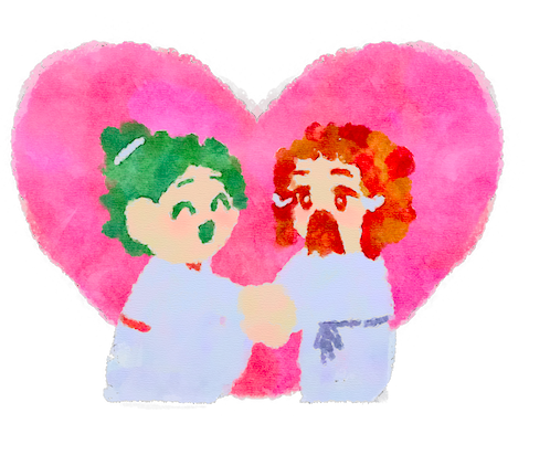 おまいりのあと、ホムチワケはヒナガヒメという美しい女の人にあい、すごしました。