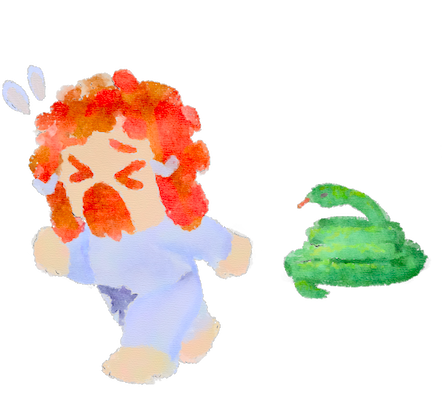 しかし、ヒナガヒメのようすをこっそりみてみると、ヒメのしょうたいはへびだったのです。