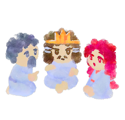 がいのると、かのじょのからだに神さまの心がはいり、ふしぎな声でこう言いました。