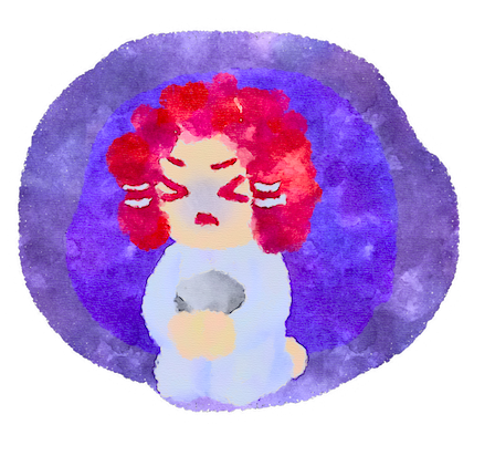 はおなかに石をあてて我慢しました。