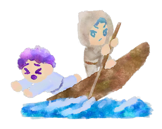しかしそれにきづいたオオサザキはウジノワキイラツコにふなのりの格好をさせました。